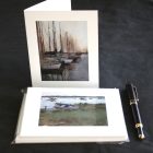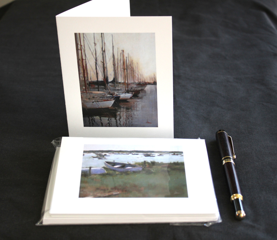 Eight notecards and envelopes of original artwork by Alana Knuff. There are four different images – 2 each. Cards are 80# cover and present an elegant way to say ‘thank you’ or ‘hello.’